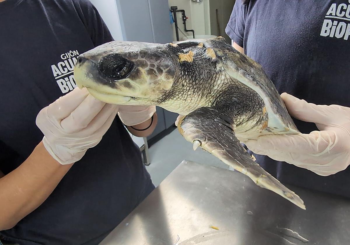 Hallada en El Musel al borde de la muerte: una tortuga lora se recupera en el Acuario de Gijón