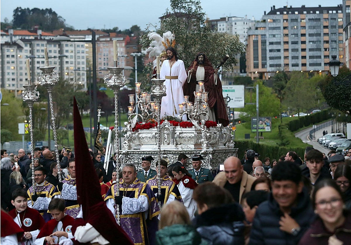 «El trabajo en equipo y el sacrificio» guían a los 24 costaleros sin prisas y con la solemnidad debida gracias a la ausencia de lluvia