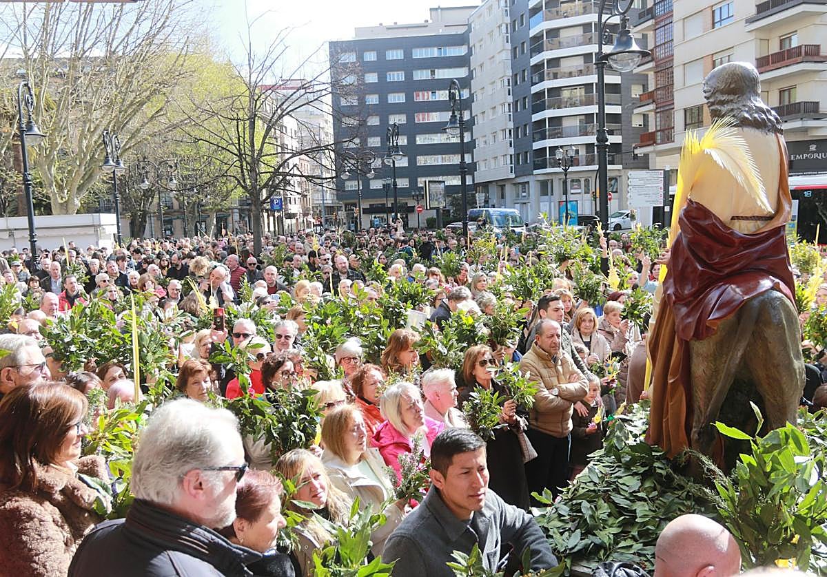 El paseo de Begoña se llenó de fieles para bendecir las palmas y disfrutar de La Borriquilla